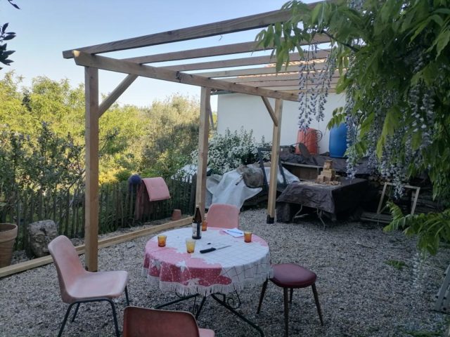 Dimanche dernier a eu lieu le chantier participatif pour construire une pergola en bois chez l’une des bénévoles de l’association.